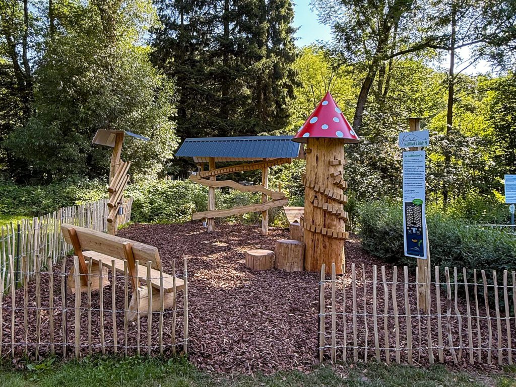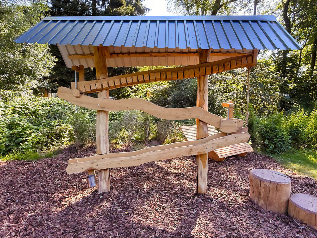 „Seit dem Kindertag 2025 sorgen zwei großformatige Holzmurmelbahnen am Kneipp-Wassertretbecken gegenüber dem Campingplatz in Neustadt/Harz für leuchtende Augen bei Jung und Alt. Eingebettet zwischen Waldbad und Südharzer Mischwald laden die wetterfesten Konstruktionen zum Experimentieren ein.“